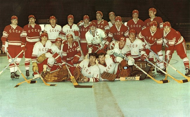 Сборная СССР по хоккею перед стартом чемпионата мира по хоккею в Швейцарии. 1971 год. Источник:
