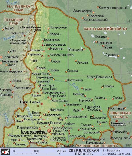 Свердловская область (географическая карта)