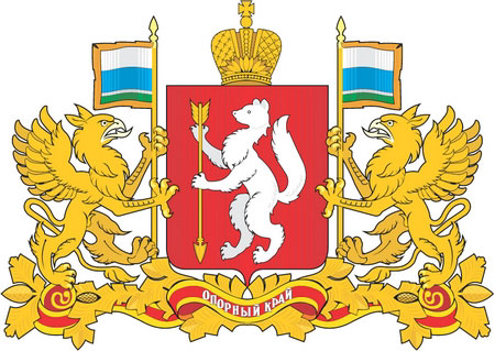 Герб Свердловской области, принятый 6 мая 2005 года. В червленом поле серебряный, стоящий на задних лапах соболь, держащий золотую стрелу, обращенную вниз. Щит увенчан золотой императорской короной. По сторонам щита золотые крылатые грифоны с флагами Свердловской области, стоящие на подножии из золотых кедровых ветвей. Девиз «Опорный край державы» начертан серебром на червленой ленте с желтыми каймами по краям.