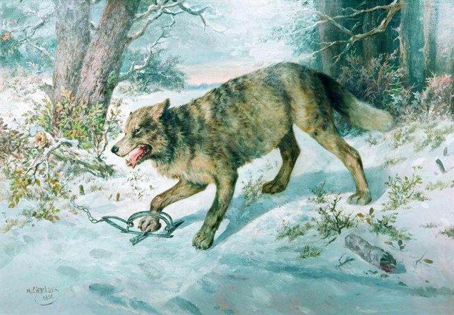 Николай Егорович Сверчков (1817-1898). Попался волк. 1896 год. Холст, масло. Частное собрание.