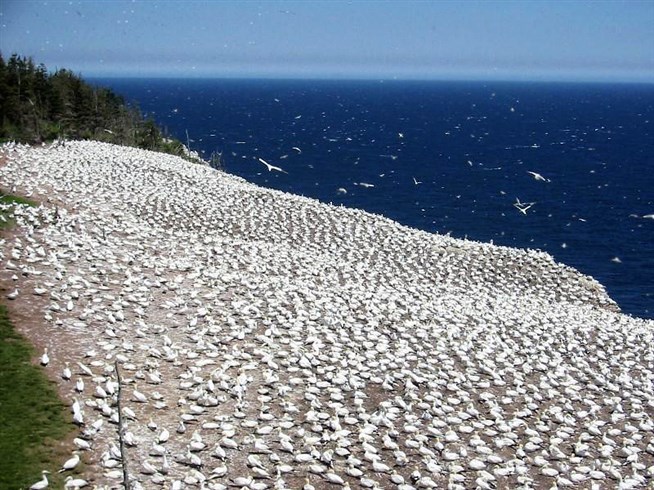 Северные олуши селятся очень плотно, используя любое подходящее место.