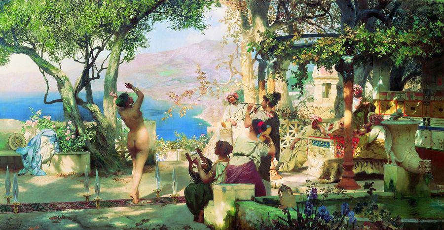 Г.И. Семирадский. Танец среди мечей. Уменьшенное повторение картины 1879-1880 годов (местонахождение неизвестно). 1881 год. Холст, масло. Третьяковская галерея.