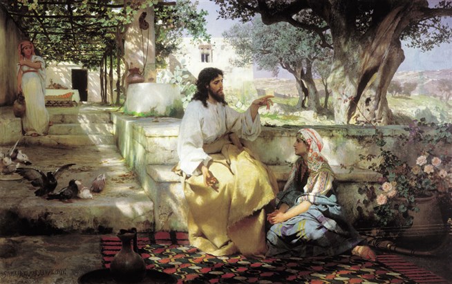 Г.И. Семирадский. Христос у Марфы и Марии. Холст, масло. 1886 год. Русский музей, Петербург.