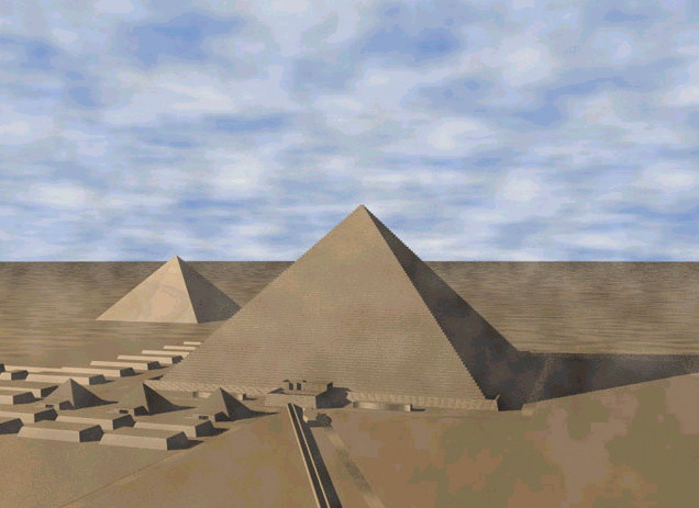 Реконструкция комплекса египетских пирамид в Эль-Гизе.