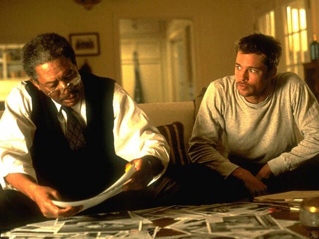 Морган Фримен и Брэд Питт. Кадр из фильма «Семь».