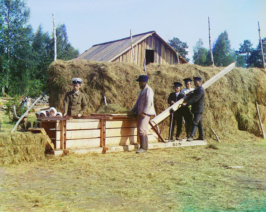 Прессовальный станок для сена. 1915 год. Карелия. Фотография С.М. Прокудина-Горского.