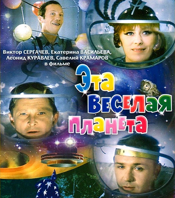 Постер фильма «Эта веселая планета» с участием В. Сергачева, Е. Васильевой, Л. Куравлева, С. Крамарова. 1973 год.