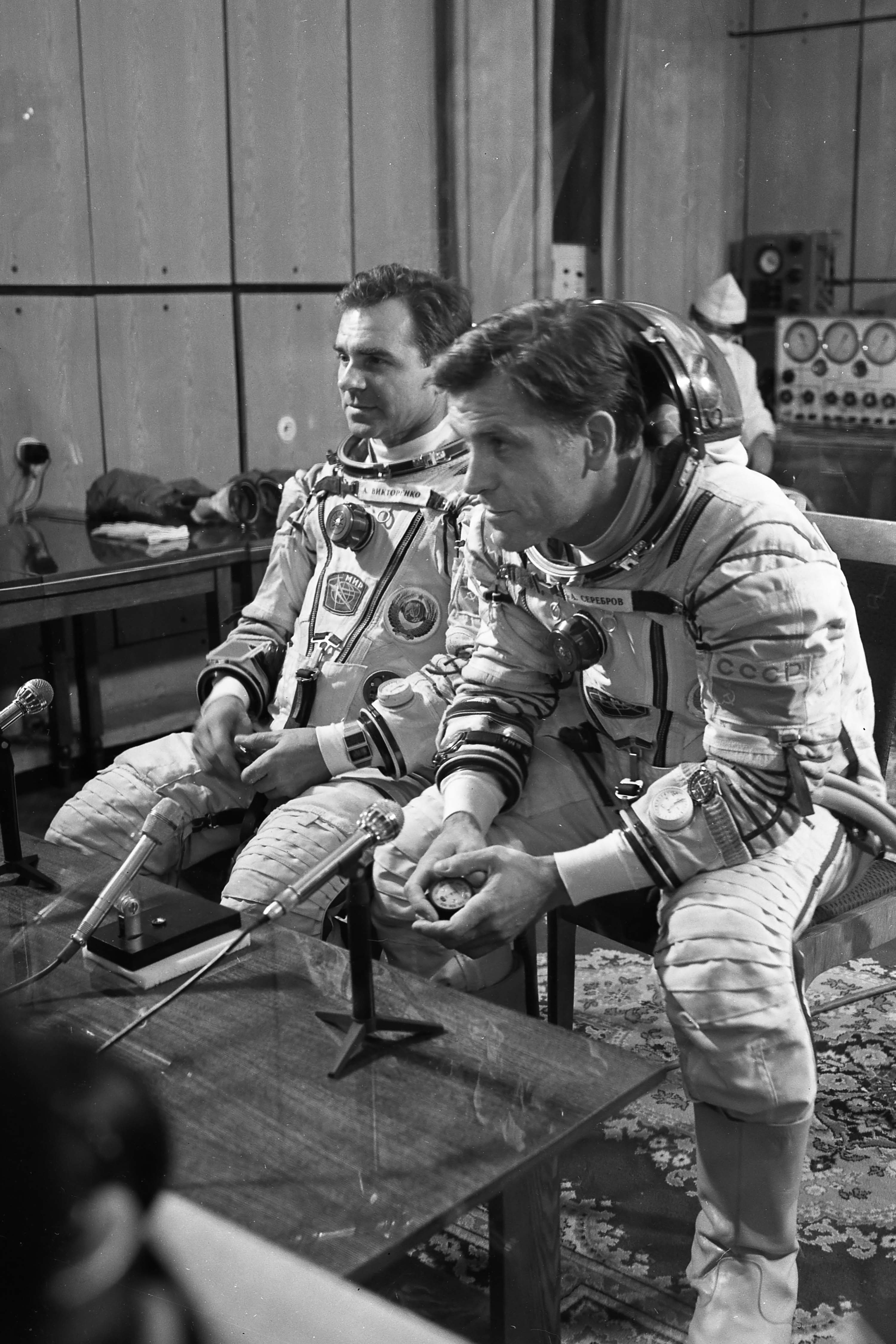 Александр Серебров и Александр Викторенко перед стартом орбитального комплексо «Мир» в космос. 6 сентября 1989 года. Фото: ЦПК,