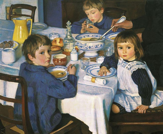 З.Е. Серебрякова. За завтраком. 1914 год. Холст, масло. Третьяковская галерея.