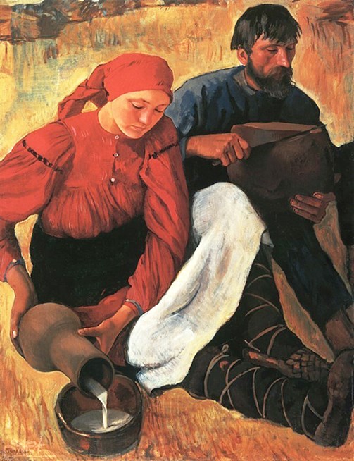 З.Е. Серебрякова. Крестьяне. Обед. Холст, масло. 1914 год. Русский музей, Петербург.