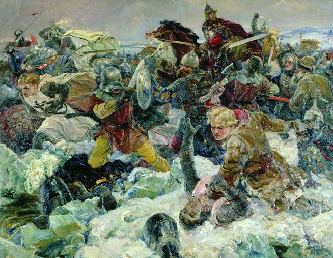 Вл.А. Серов. Ледовое побоище. 1942 год. Холст, масло. Пензенская картинная галерея.