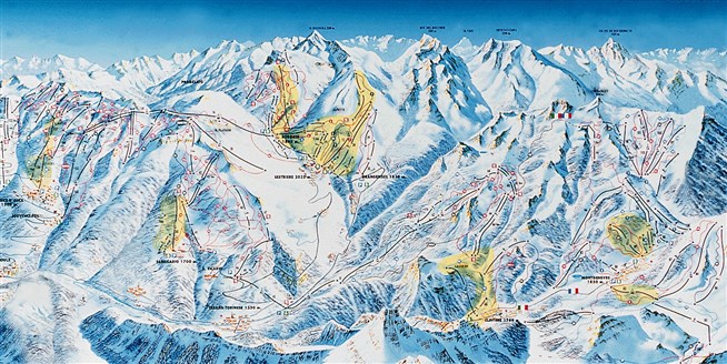 Схема горнолыжных трасс курорта Сестриере в Италии.