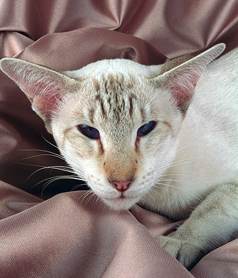 Сиамская кошка с полосатыми отметинами (тэбби-пойнт).