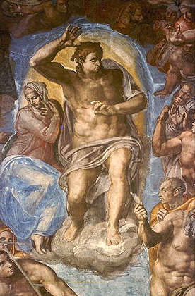 Микеланджело. «Христос-судия и Богоматерь». Страшный суд. Фреска алтарной стены Сикстинской капеллы (1535-41, Рим, Ватикан).