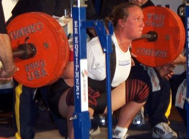 Пауэрлифтинг популярен не только среди мужчин, но и среди женщин. Чемпионат мира по пауэрлифтингу среди женщин (1999).