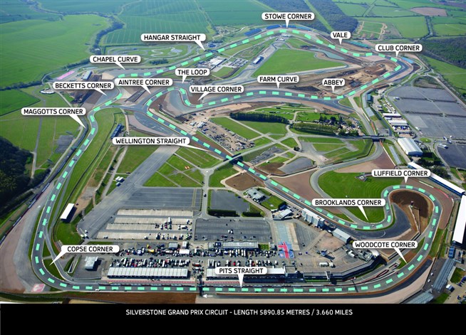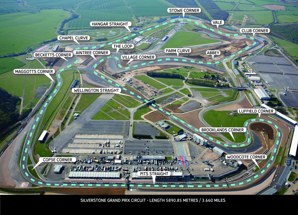 Трасса Сильверстоун (с подписанными названиями поворотов). Великобритания. 2010 год. Фото: silverstonecircuit, flickr