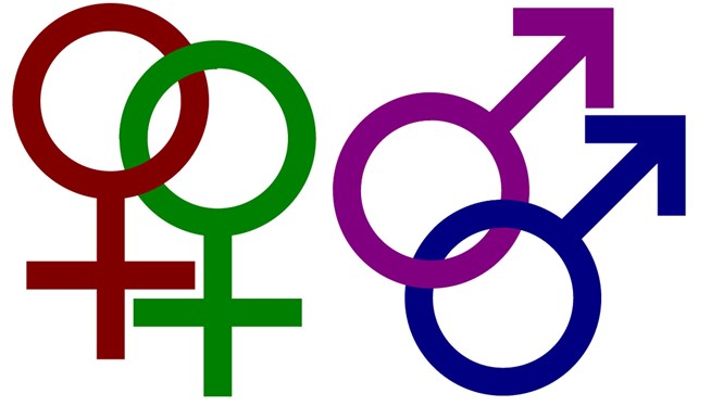 Символы гомосексульности: слева символ женской любви, справа - мужской. Рисунок: Martin Strachoň, wikimedia.org