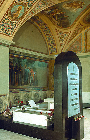 Москва. Надгробия Александра Пересвета и Родиона Осляби в церкви Рождества Богородицы в Старом Симоновом монастыре.