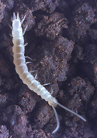 Скутигерелла (Scutigerella immaculata), взрослая особь. Многоножка класса симфил.