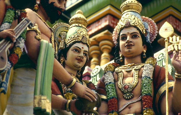 Деталь фасада индуистского храма Винаябар. Сингапур.