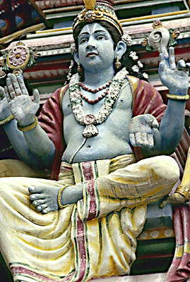 Скульптура на фасаде индуистского храма Винаябар. Сингапур.