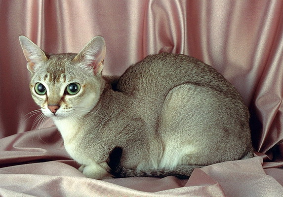 Одна из самых мелких пород домашних кошек - сингапурская кошка.