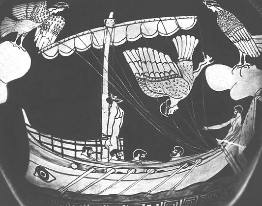 «Корабль Одиссея и сирены». Фрагмент росписи краснофигурного стамноса. Около 475 до н. э. Британский музей. Лондон.