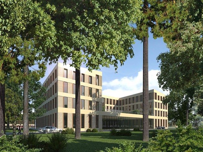 Проект офиса Технопарка «Сколково». Новый офис будет построен из современных, экологически чистых, энергосберегающих материалов. Май, 2013 года. Технопарк «Сколково», создан в 2010 году как один из ключевых элементов экосистемы Сколково. Иллюстрация с сайта инновационного центра «Сколково» community.sk.ru
