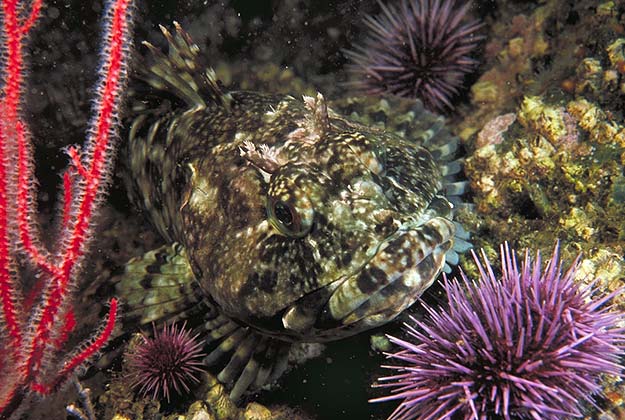 Благодаря маскирующей окраске скорпены практически незаметны среди камней.