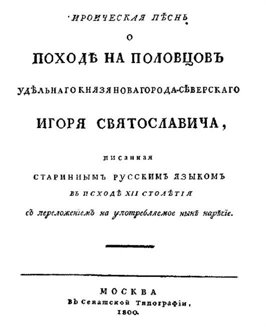 Слово о полку Игореве (титульный лист первого издания)