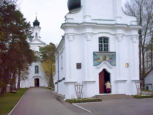 Слоним. Жировичи. Успенский монастырь. На переднем плане — фасад Богоявленской церкви (17-18 вв.), на втором плане — Крестовоздвиженская церковь (1769). Оба храмы выполнены в стиле барокко.