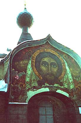 Смоленская область. Фленово. Мозаика Н. Рериха над входом в церковь Святого Духа.
