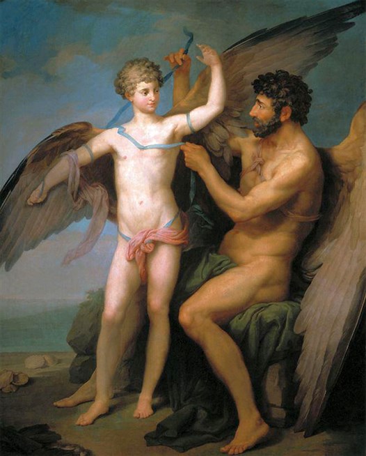 П.И. Соколов. Дедал привязывает крылья Икару. 1777 год. Холст, масло. Третьяковскяа галерея.