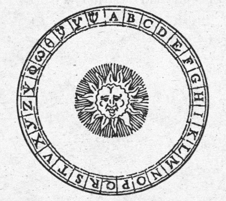 Солнце — начало и конец Вселенной (из книги «De Umbris Idearum» Джордано Бруно)