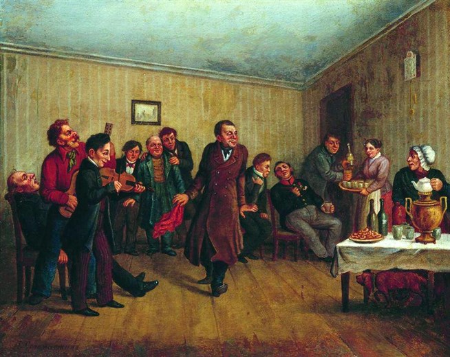 Л.И. Соломаткин. Вечеринка у приказчика. Холст, масло. Волгоградский музей изобразительного искусства.