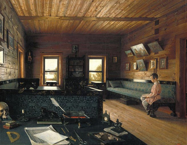 Г.В. Сорока. Кабинет дома в Островках, имении Н.П. Милюкова. 1844 год. Холст, масло.