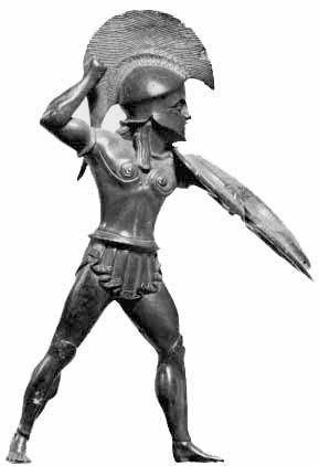 Тяжело вооруженный воин — гоплит. Бронзовая статуэтка, работа спартанского мастера. Около 500 г. до н. э.