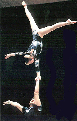 Выступление смешанной пары. Стойка партнерши на одной руке.