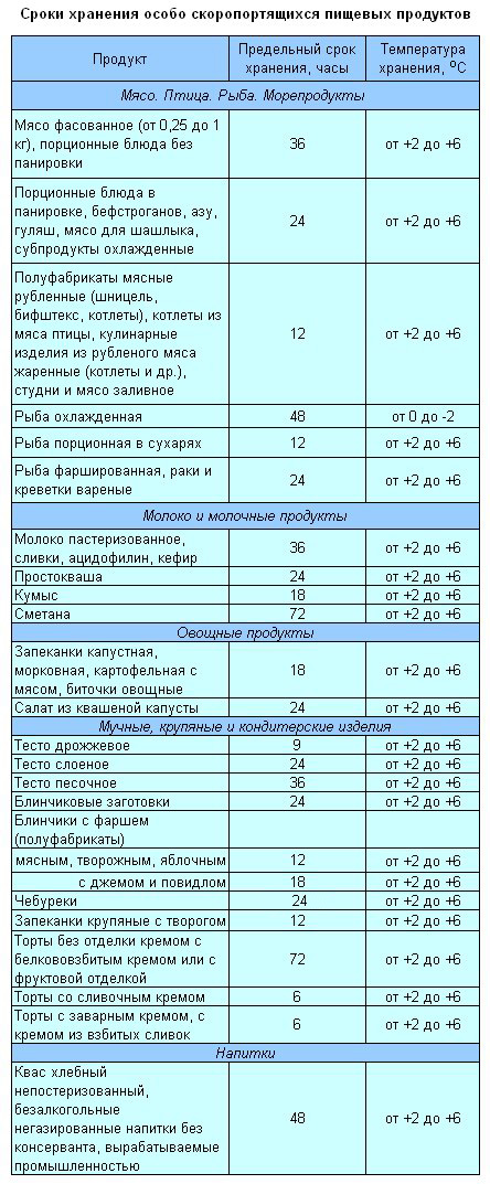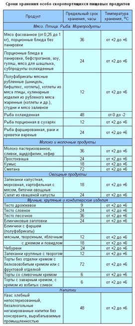 Сроки хранения особо скоропортящихся пищевых продуктов