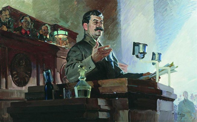 Василий Семенович Сварог (1883-1946). Доклад И.В. Сталина о принятии Конституции 1936 года. 1938 год. Холст, масло. Государственный музейно-выставочный центр «Росизо», Москва.