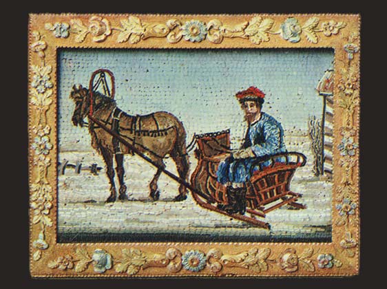Императорский стекольный завод. Плакетка. Вторая треть 19 века. Смальта, медь, серебро, золото. Плакетка имитирует живопись маслом.