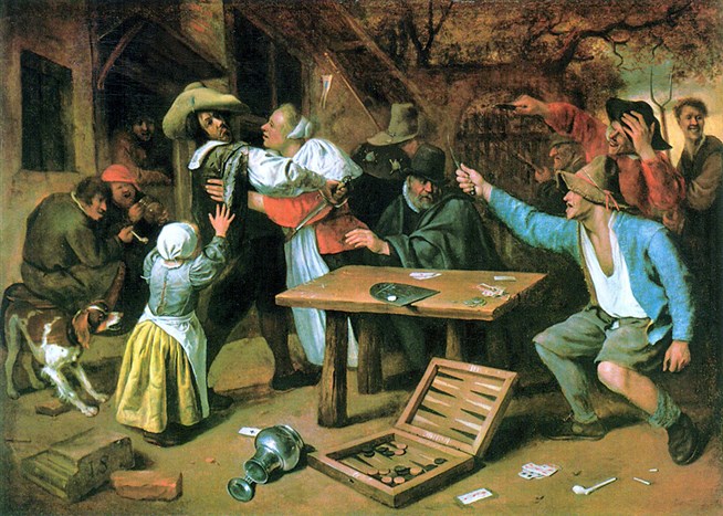 Ян Стен. Спор за карточной игрой. Государственные музеи, Берлин.