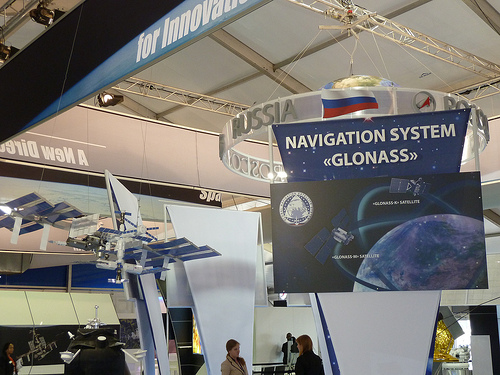 Выставочный стенд ГЛОНАСС с макетом спутника. Великобритания. 2012 год. Фото: steadytraveller, flickr