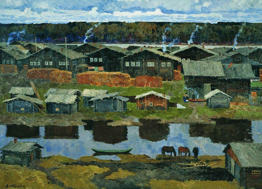 В.Ф. Стожаров. Деревня Сёрдла. Коми АССР. 1969 год. Холст, масло. Третьяковская галерея.