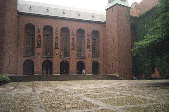 Стокгольм. Внутренний двор городской ратуши — Стадсхюсет. В Синем зале ратуши проходят торжественные банкеты по случаю вручения Нобелевских премий.