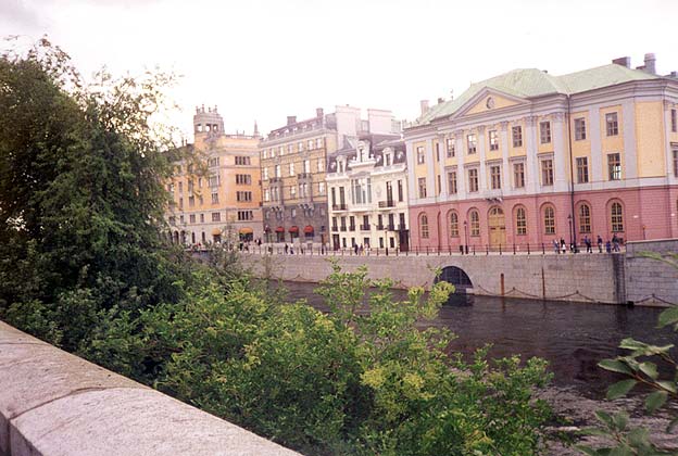 Стокгольм. На набережной Стремгатан расположен дом премьер-министра (трехэтажный, светлый).