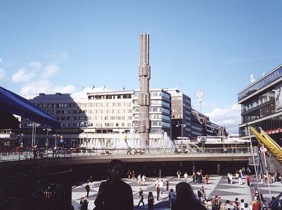 Стокгольм. В зоне площадей Хеторгет и Сергельсторг сооружен крупный комплекс торговых зданий, объединенных многоярусными переходами и пешеходными улицами. Справа: Культурхюсет (Культурный центр).