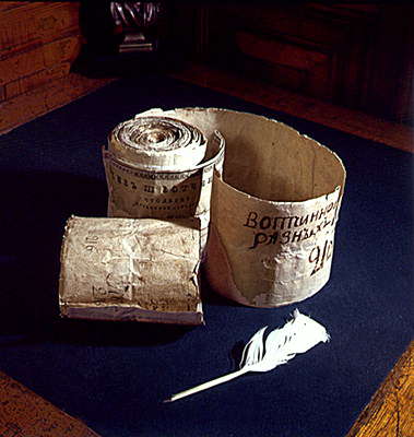 Столбцы Поместного приказа с гусиным пером. 17 век.
