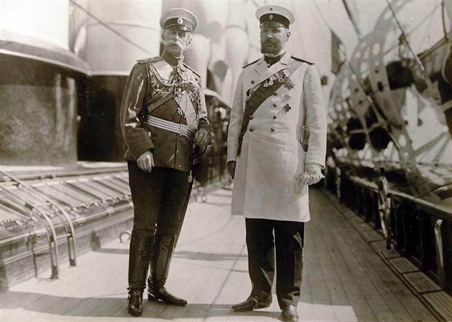 В.Б. Фредерикс и П.А. Столыпин на яхте «Штандарт». Рига. Июль 1910 года.