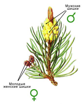 Половые клетки голосеменных созревают в специальных органах - шишках. Женские шишки располагаются на верхушках побегов, имеют красноватый цвет, состоят из чешуй, на которых находятся 2 семязачатка. Мужские шишки располагаются у основания побегов, мелкие, овальные, на чешуйках расположены пыльцевые мешочки с пыльцой.